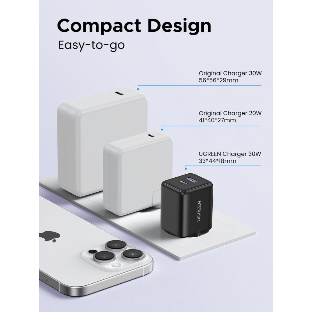 UGREEN Kepala Charger Adapter Dual Port USB A + C Adaptor Fast Charging 30W For iPhone 15 16 Android