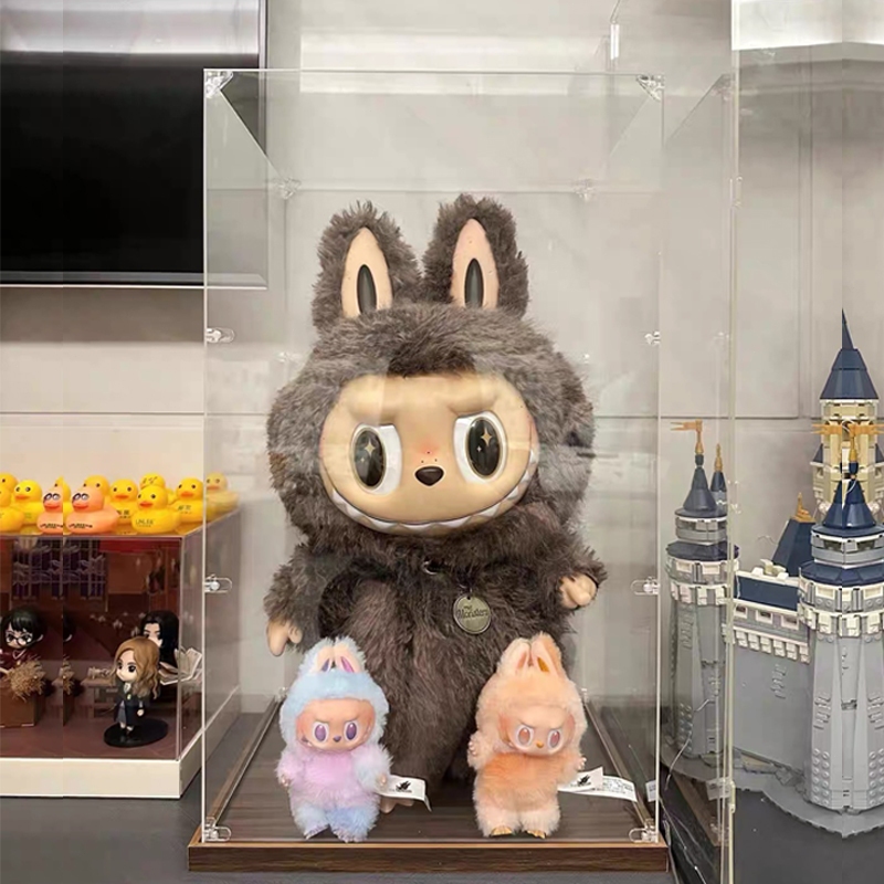 Kotak Display ZIMOMO/ANGEL Akrilik Popmart Labubu Display Box Degan Alas Kayu 2cm LABUBU Akrilik Transparan Kotak Displa