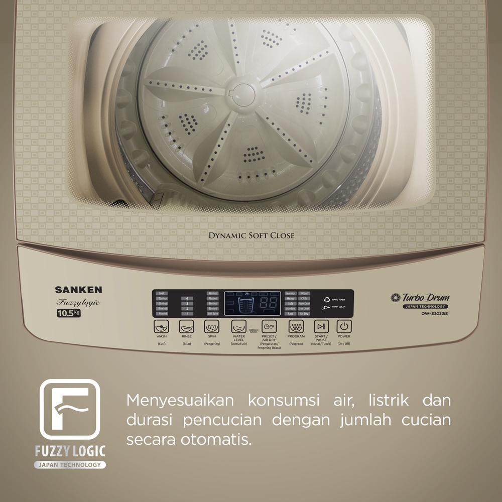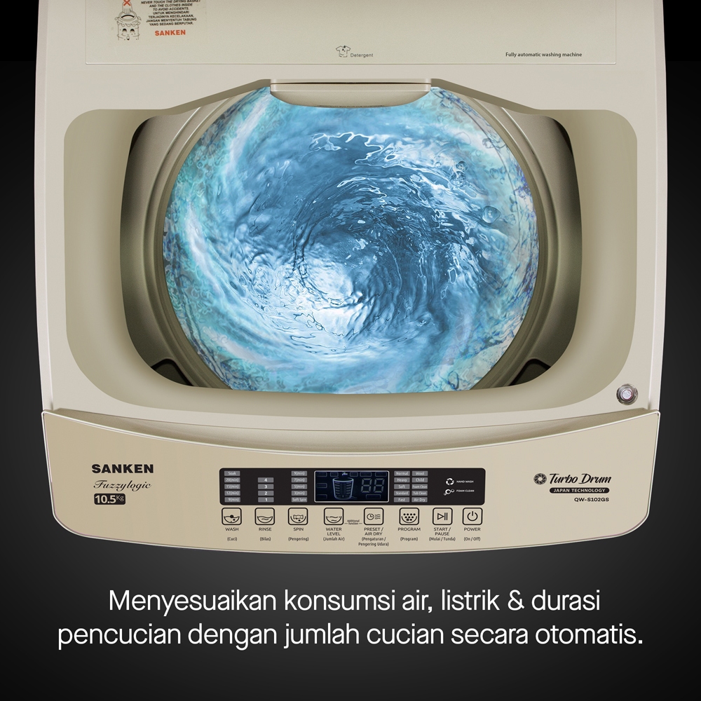 SANKEN MESIN CUCI 1 TABUNG TOP LOADING 10.5 8 KG FUZZY LOGIC DRUM STAINLESS AUTO FILL ISI AIR OTOMATIS ANTI KARAT