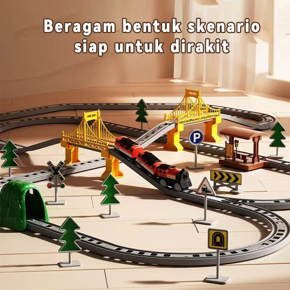 Tatajoy Kereta Api Mainan Rel Panjang Mainan DIY Kereta Rel Listrik Kereta Api Rail King Mainan Anak Laki Laki