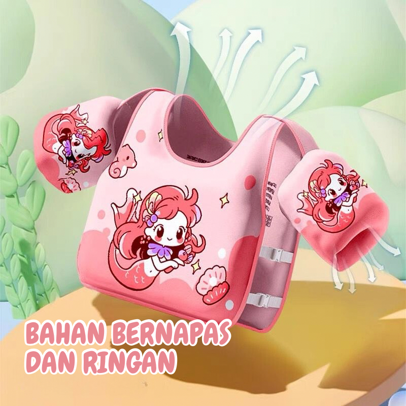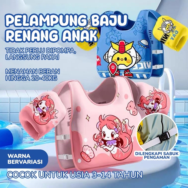 BBAK Baju Pelampung Berenang Anak | Vest Berenang Anak-anak Bahan Kulit Bernafas Motif Imut Cocok Untuk Anak 3-14 Tahun