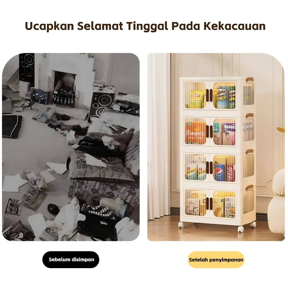 Kotak penyimpanan plastik besar/Lemari penyimpanan serbaguna,katrol senyap,dilipat,tanpa instalasi