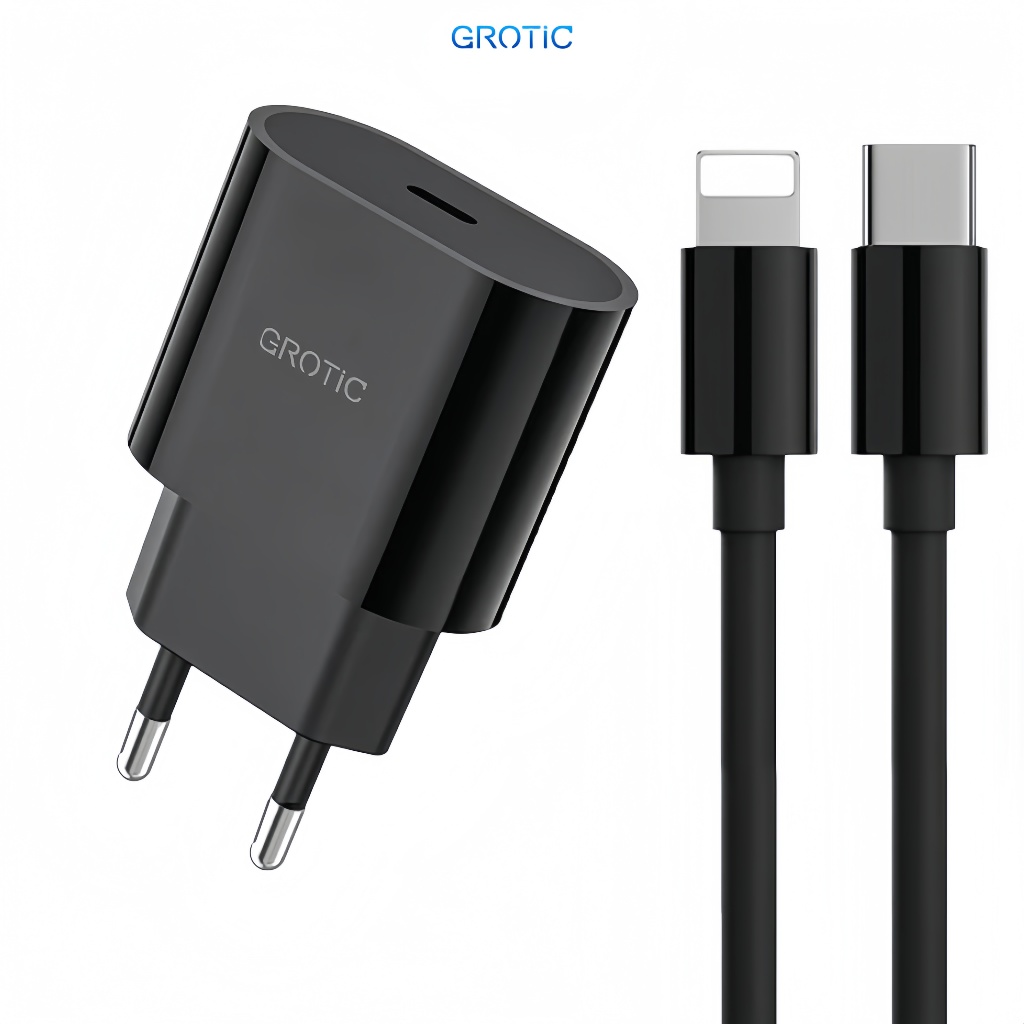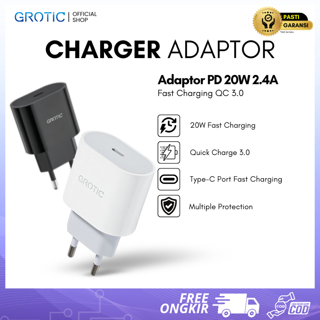 GROTIC Charger Adaptor PD20W Kepala Charger Fast Charging QC3.0 Type-C Lightning