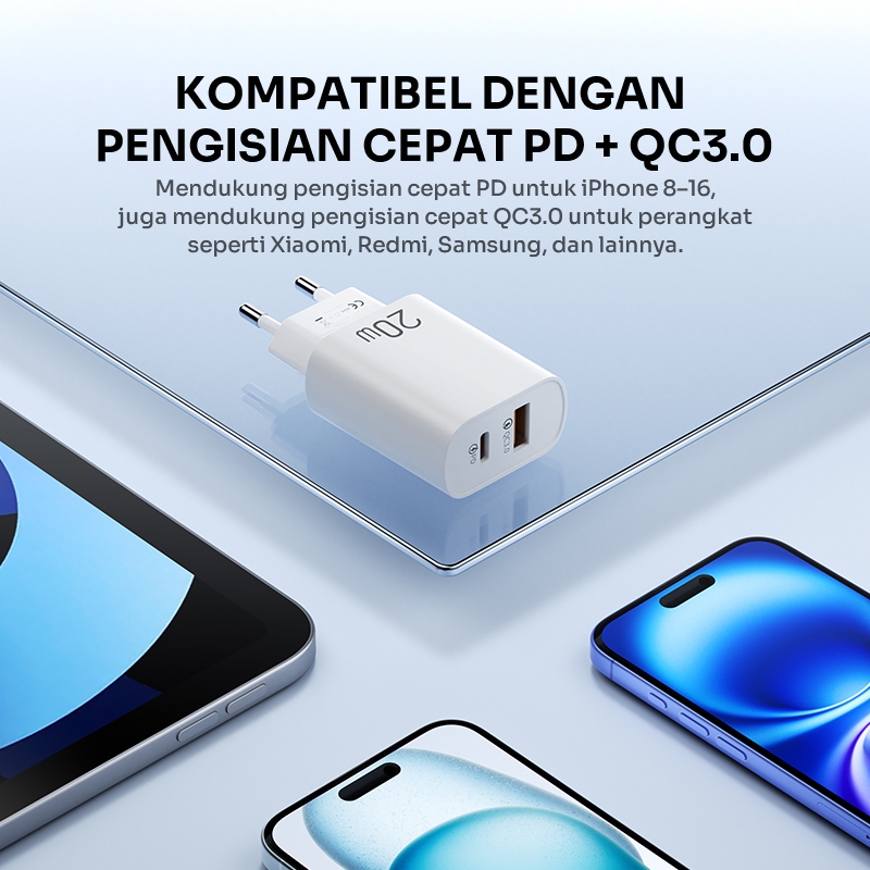 ROBOT Adaptor Charger Fast Charging 20W Power Delivery 3.0 untuk iPhone dan Android Colokan Kepala Charger Type C RT-L7