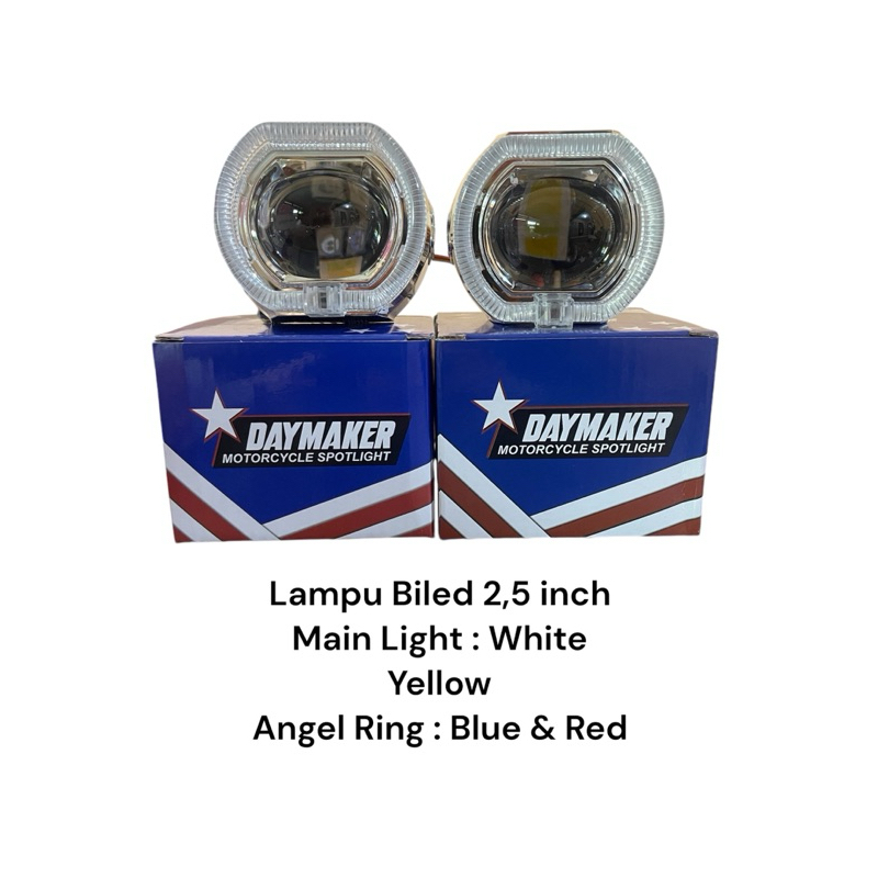 HIGSEA STORE Daymaker Lampu Depan Biled 2,5 Inch 6,5 Cm Biru Dan Merah LED Lampu Biled