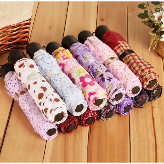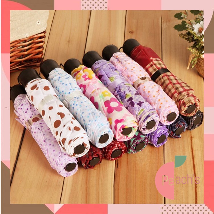 PEACH - Payung Lipat Motif Bunga Motif Random Anti UV / Payung Lipat 3 Pelindung Panas Hujan Payung / Payung Lipat Motif