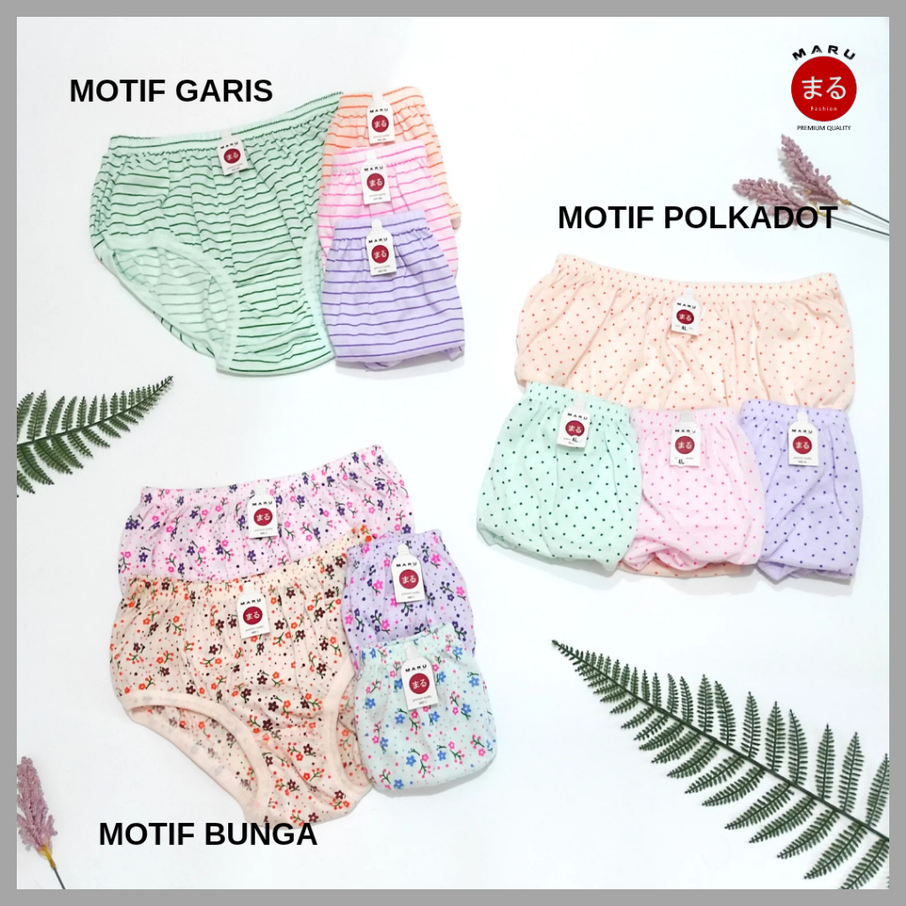 6 PCS & 12 PCS Celana Dalam Wanita Lusinan Jumbo Bumil Motif Bunga Polkadot & Garis (Uk L XL 3L 4L)