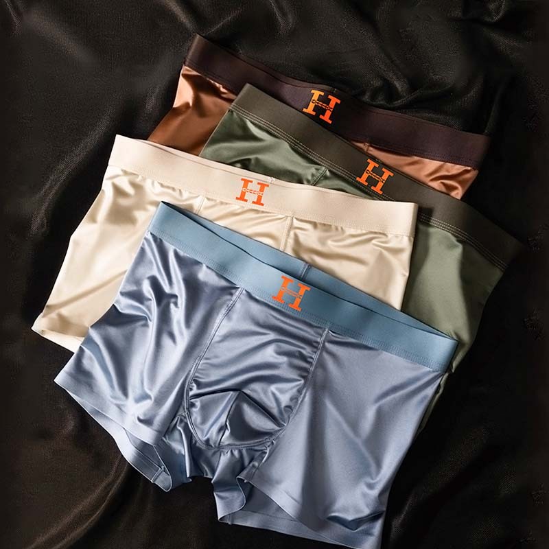 HEPNIES Celana Dalam Pria 3pcs Premium Bahan Sutra Es Tanpa Jahitan Lembut Bernapas Menyerap Keringat Tidak Gerah