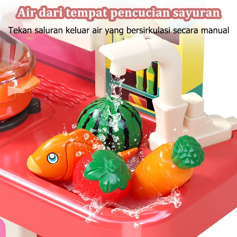 LEYI 95CM Mainan Masak Masakan Jumbo Wastafel Dapur Spraying Mist Mainan Masak Anak Perempuan