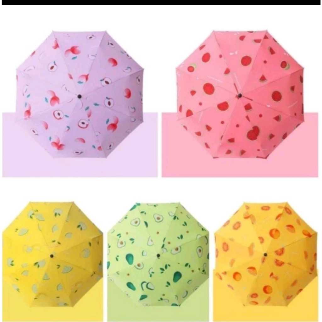Payung Lipat Motif Buah Semangka Lemon Alpukat Jeruk Buah Peach Anti Sinar UV Protection
