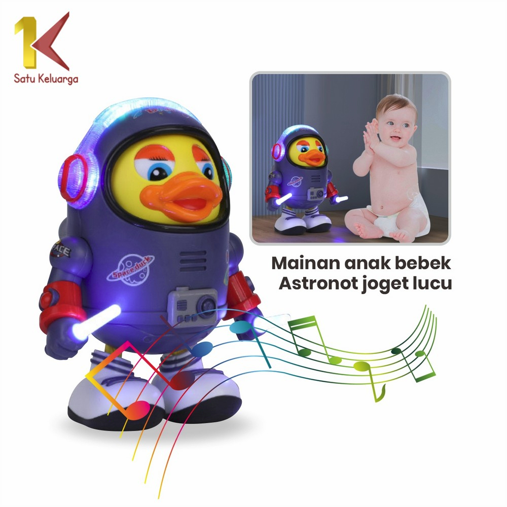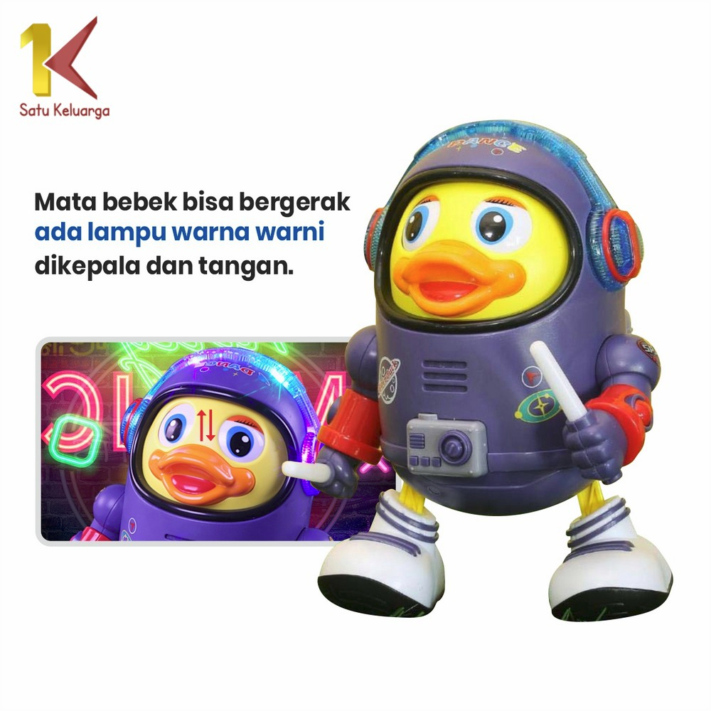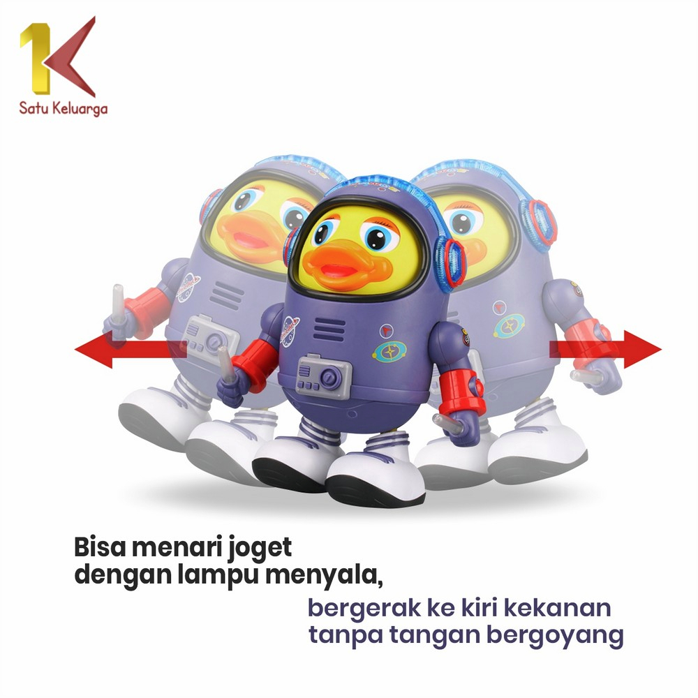 Satu Keluarga Mainan Anak Bebek Astronot Joget M311 Space Duck Dance Kids Robot Menari Ada Lampu + Musik / Mainan Bebek