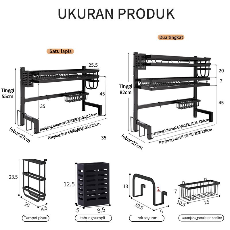 Rak Cuci Piring Wastafel Rak Dapur Anti Karat Stainless Steel Rak Piring Dengan Aksesoris