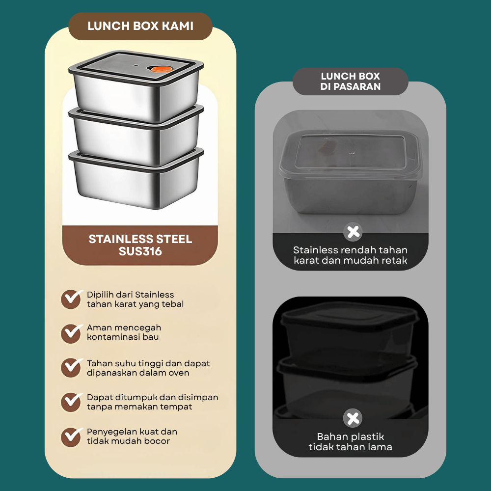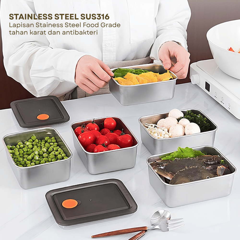 [BUY 4 FREE 6PCS DAPET 10PCS] FUNNYCOOK Food Box Stainless Steel Bertutup Wadah Penyimpanan Makanan- Free Food Box 13cm