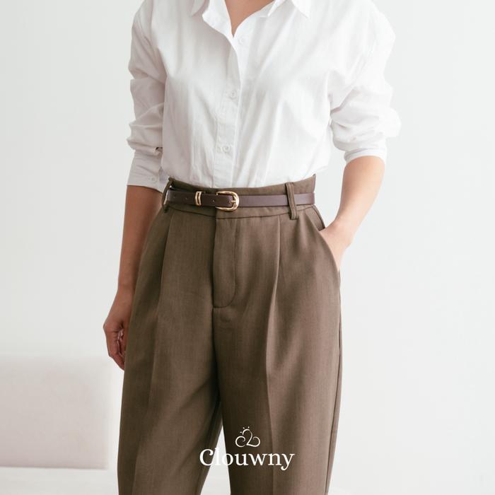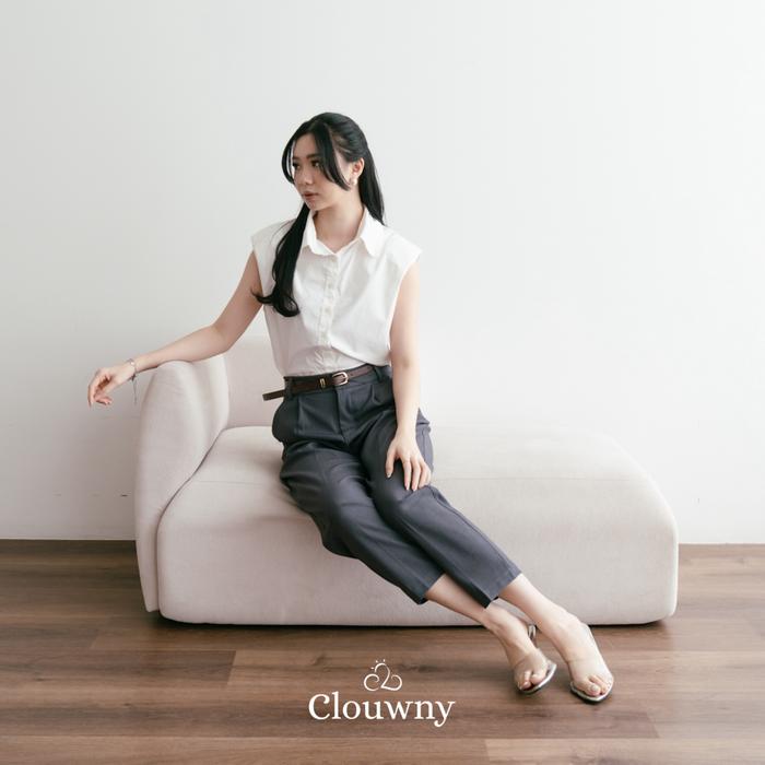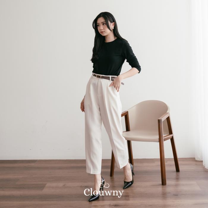 CLOUWNY WILLY OFFICE PANTS BAWAHAN CELANA PANJANG FORMAL CELANA KANTOR WANITA PREMIUM COTTON CASUAL KERJA HITAM BASIC YANG TIDAK ISBAL - GREY, M