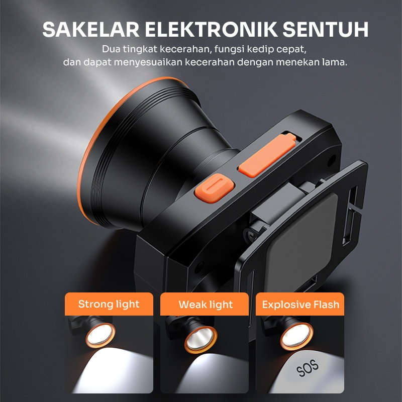 ROBOT Senter Lampu Kepala Outdoor Camping/Emergency Lamp RT-HL02 LED 1200mAh Rechargeable Original - Garansi 1 Tahun