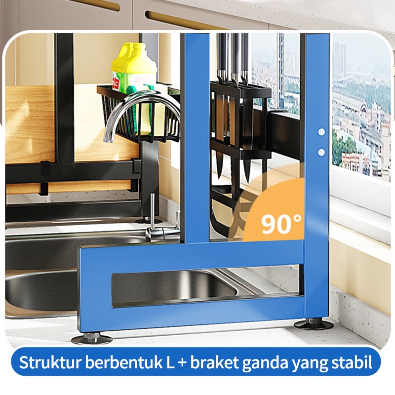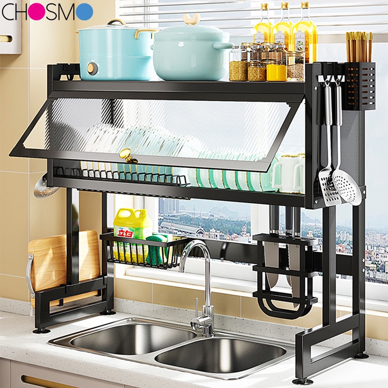 Rak Piring Wastafel Dapur Stainless Steel Multi-fungsi Dengan Penutup