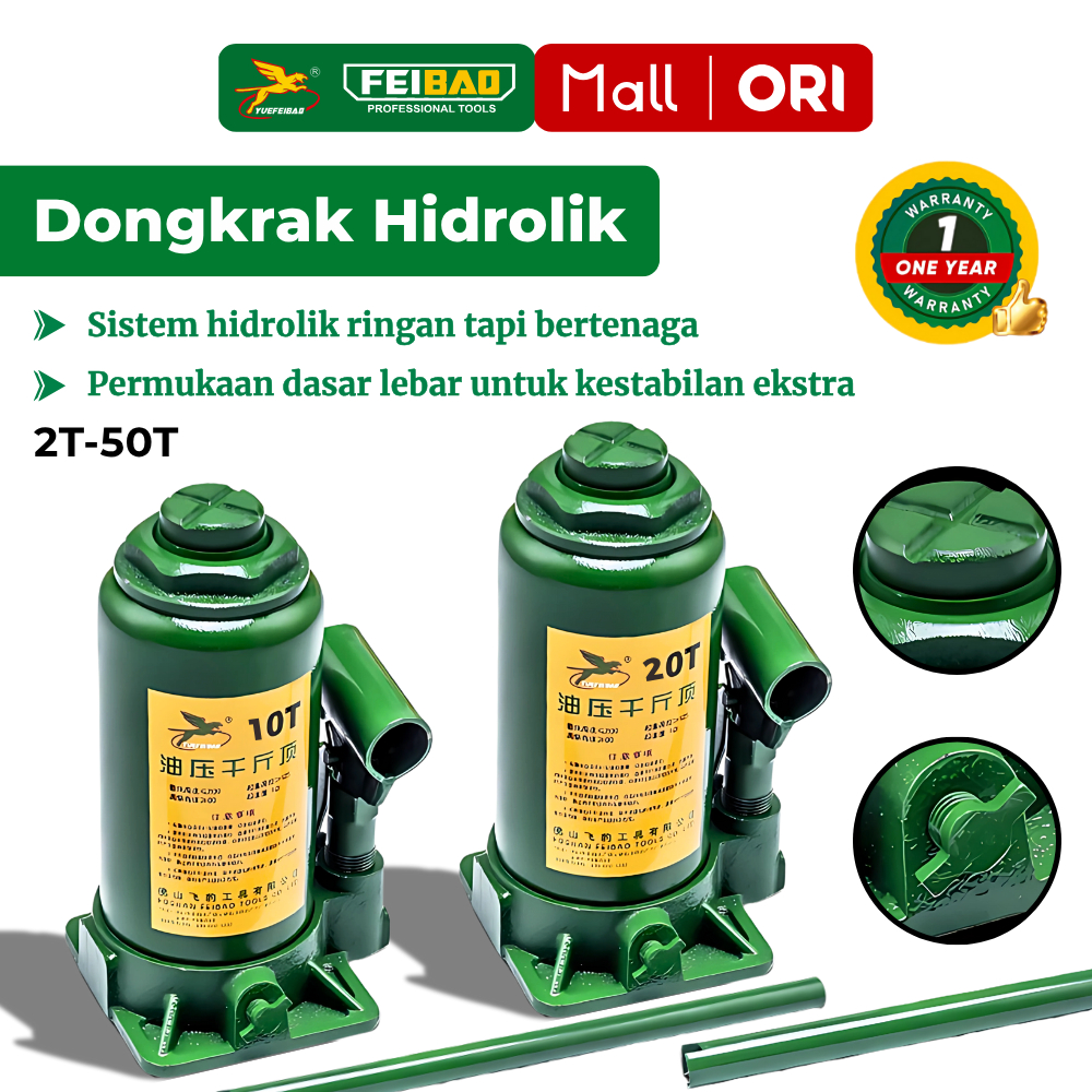 HIGSEA STORE Feibao Dongkrak Botol Hidrolik 2T–50T Alat Angkat Mobil Industri Otomotif Lengkap Berbagai Ukuran