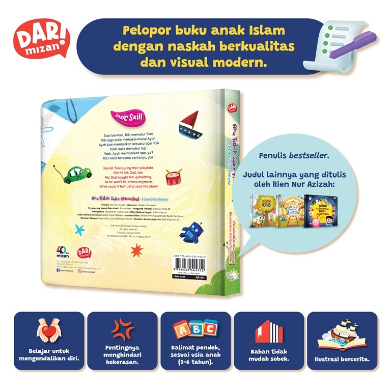 [Mizan] Aku Tidak Suka Memukul I Don’t Hit Others - Bilingual (Boardbook) | Buku Cerita Anak 3-6 Thn