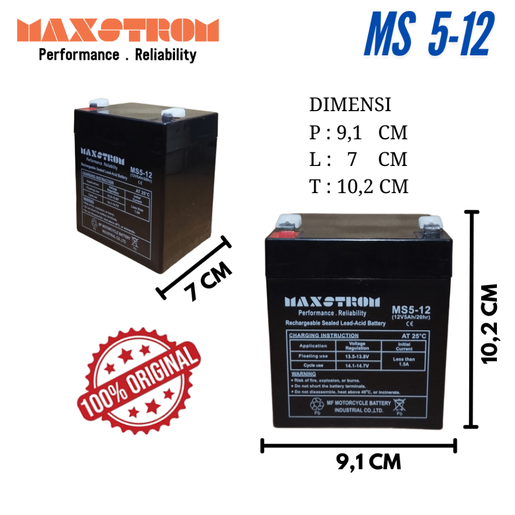 HIGSEA STORE Maxstrom Aki Kering Speaker Aki Emergency 12V5Ah 12V 5Ah