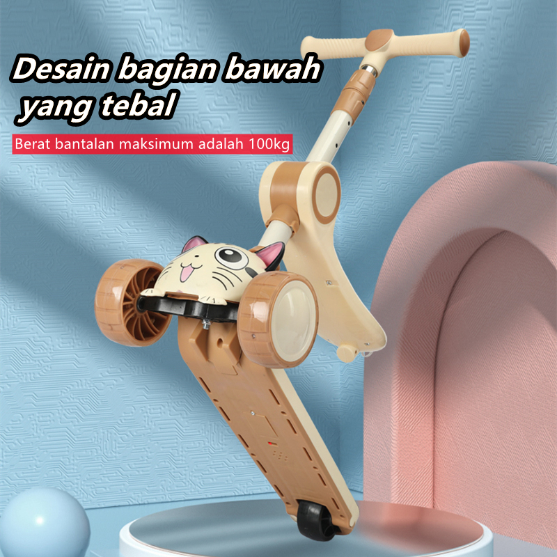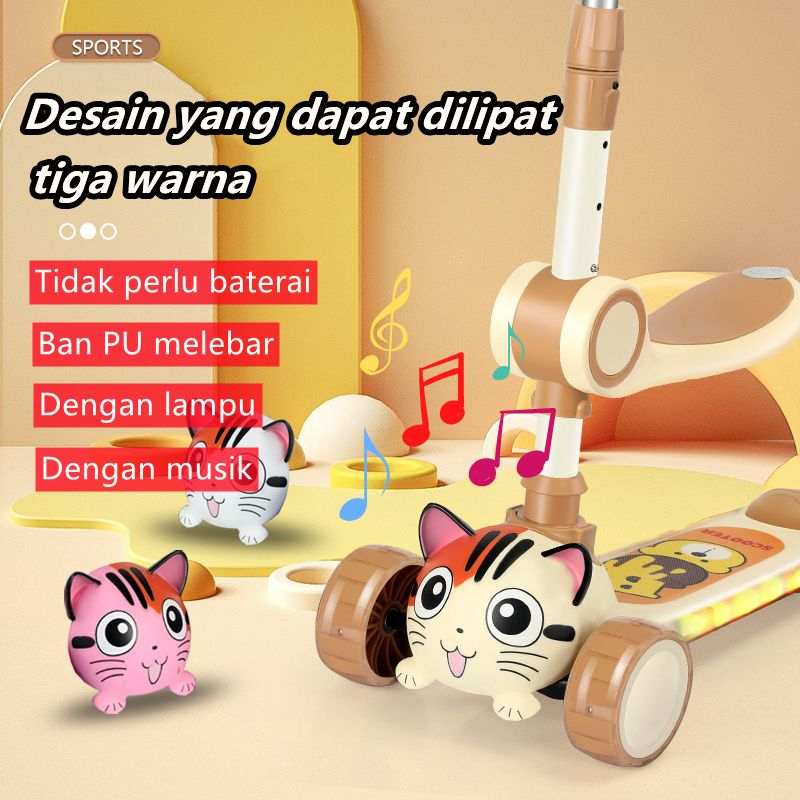 LUKATSU Scooter Anak 3 Roda Bisa Dilipat Dengan Lampu Dan Musik Skuter Harimau Skuter Anak Laki-laki Dan Perempuan