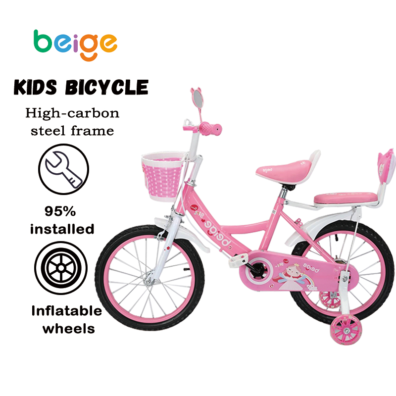 BEIGE Sepeda Anak Roda 4 Warna Pink Keranjang Ukuran 12 & 16& 18 Inci Usia 2-12 Tahun