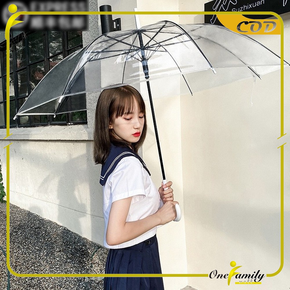 ONE-C433 Payung Transparan Korea Japanese Style Payung Tongkat Bening Transparan Fashion Drama Korea Simple Payung Polos