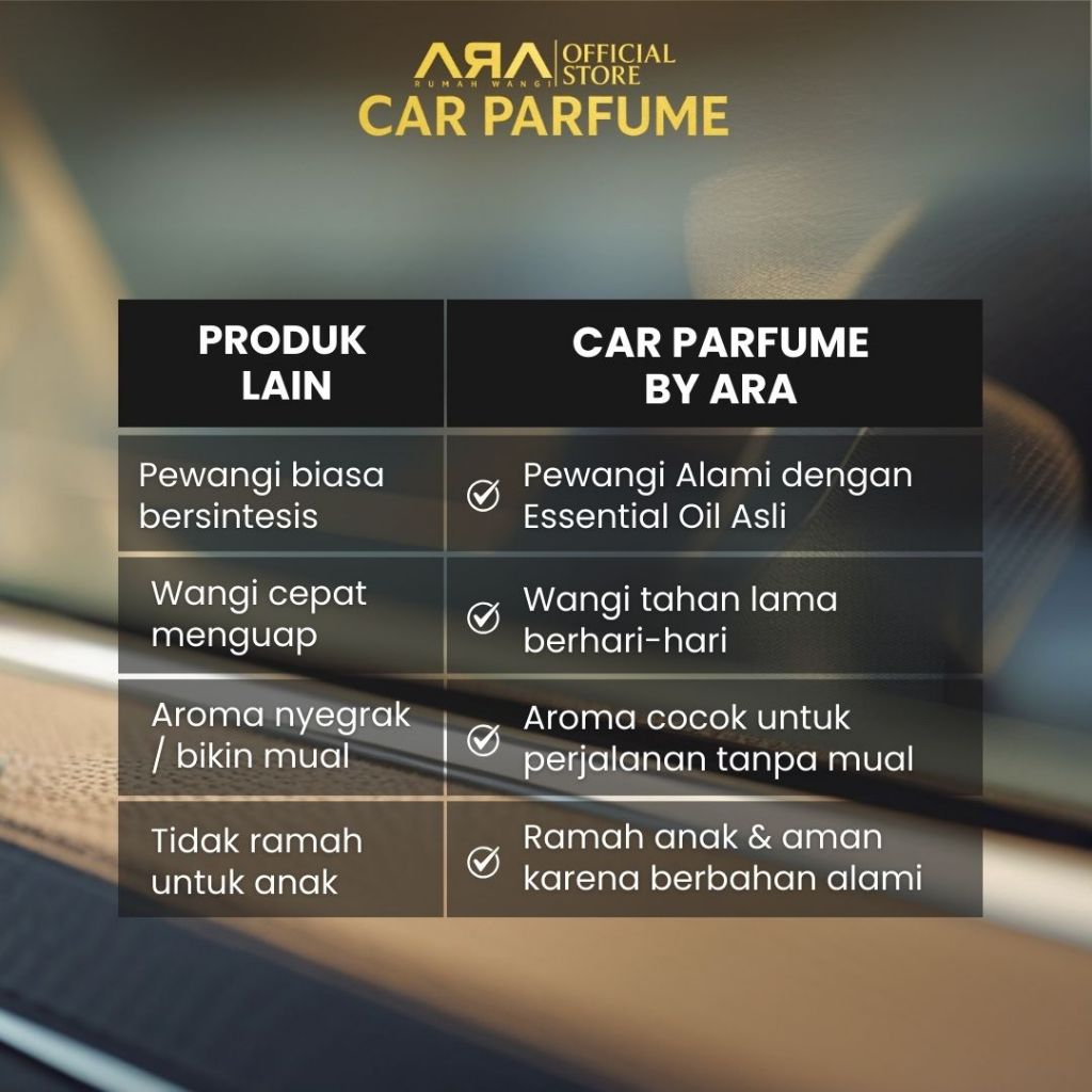 HIGSEA STORE Parfum Mobil Premium Aromaterapi Natural Tahan Lama Anti Mual - Pengharum Mobil Rumah Wangi ARA