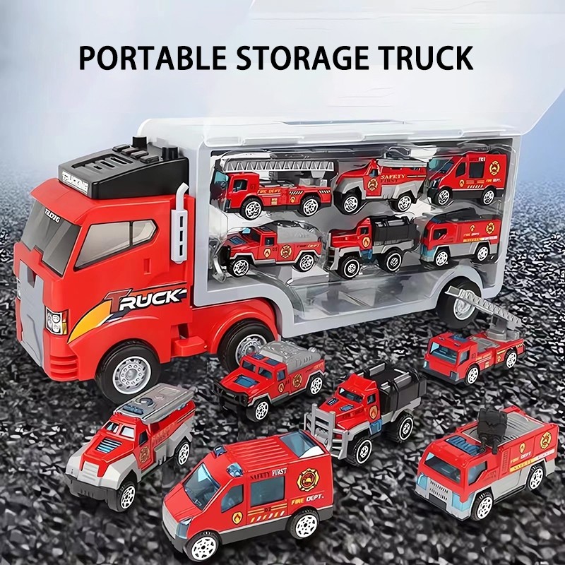 JIQILE【Free 6 Mobil Car】Mainan Anak mobil Storage Container Fire Truck car set Alloy PullBack Car Inertia car