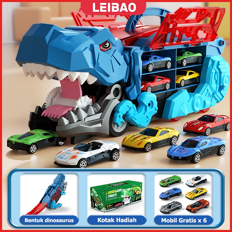 LEIBAO【Free 4/6/12 Mobil Car】Deformed Dinosaur Track Truck Mobil Mainan Anak Dinosaurus Mobil Truk Dino Deformasi Toy Ca
