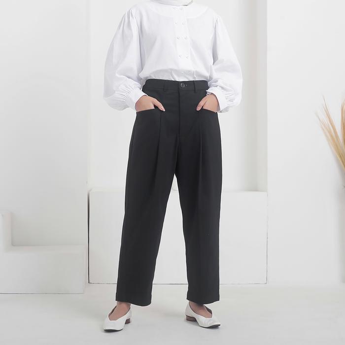ECLEMIX PANTS GINY | CELANA ANKLE WANITA DAILY BASIC | CELANA PANJANG CASUAL - NAVY, M