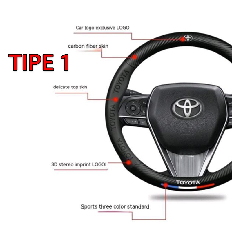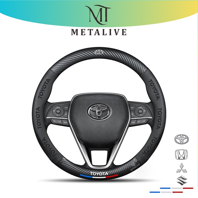 HIGSEA STORE METALIVE Sarung Setir Mobil Kulit Cover Setir Mobil Embossed Karbon Asli Aksesoris -38cm Toyota