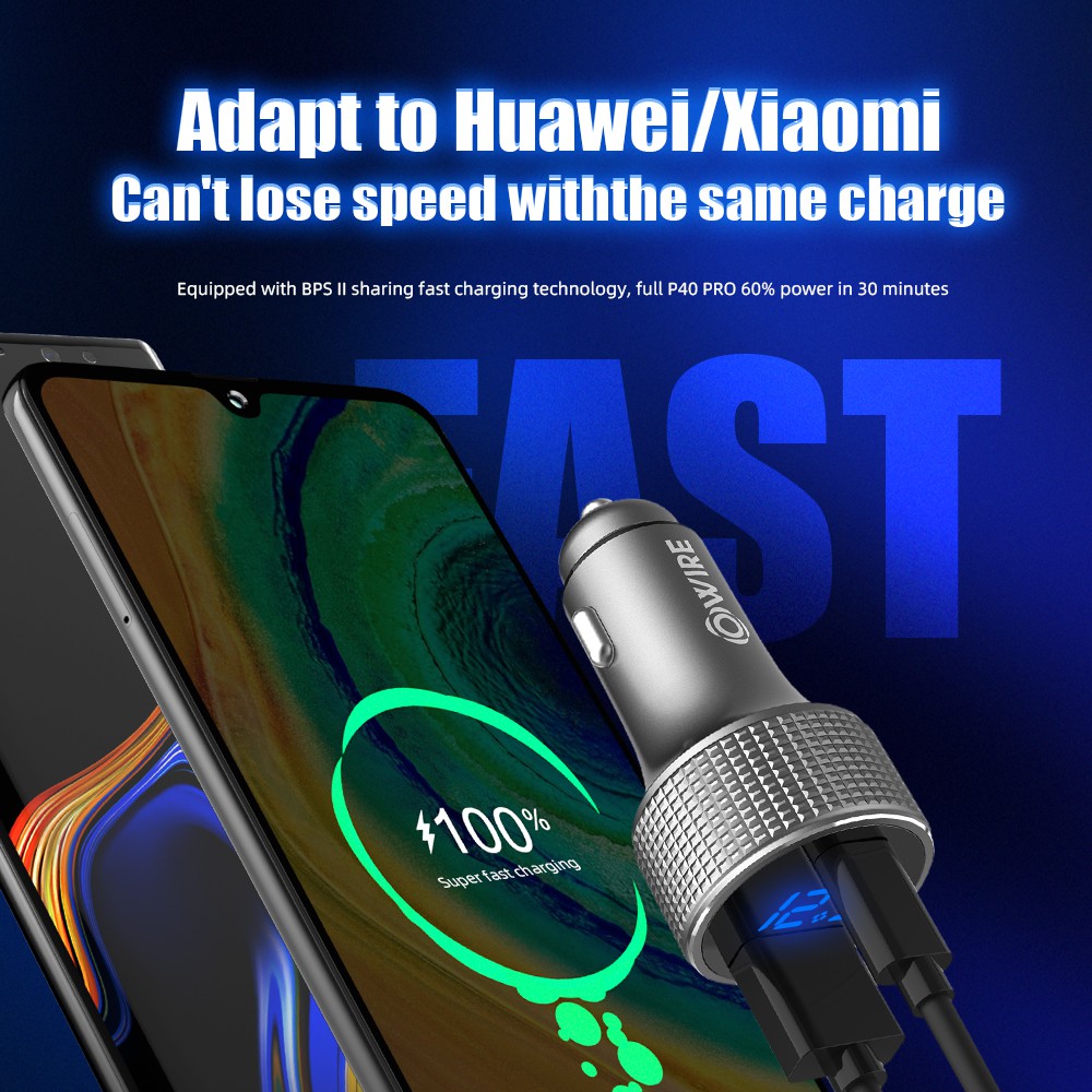 HIGSEA STORE OWIRE Car Charger 45w Type-C Pd+Usb Quick Charge 3.0 PD20W+QC22.5W 2 usb ports