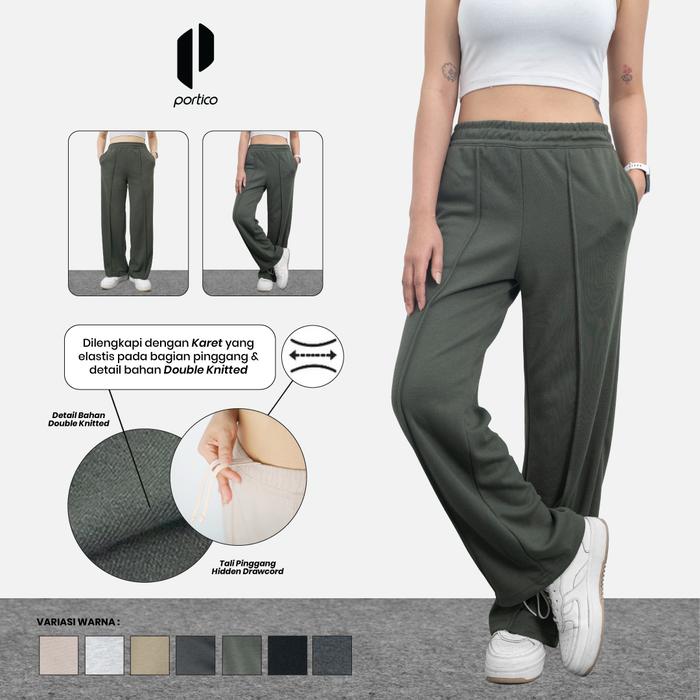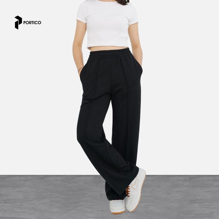 PORTICO - LEXA HIGH WAIST BAGGY LOOSE PANTS KOREAN STYLE - DOUBLE KNITTED - CELANA PANJANG WANITA - BLACK, S