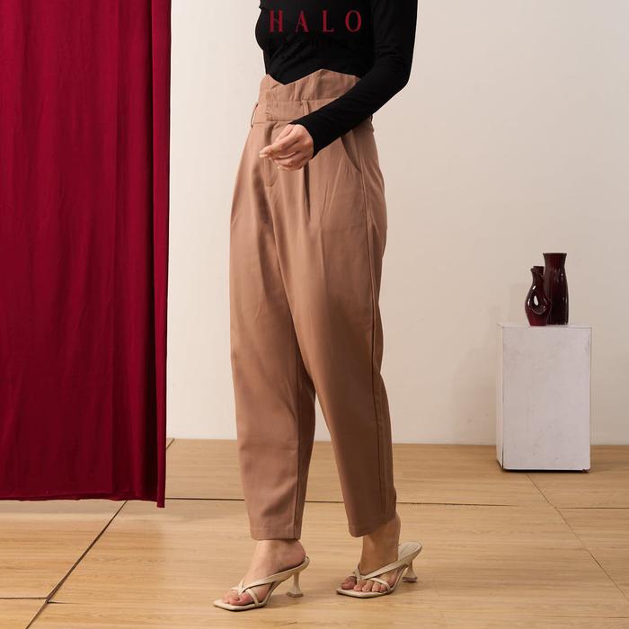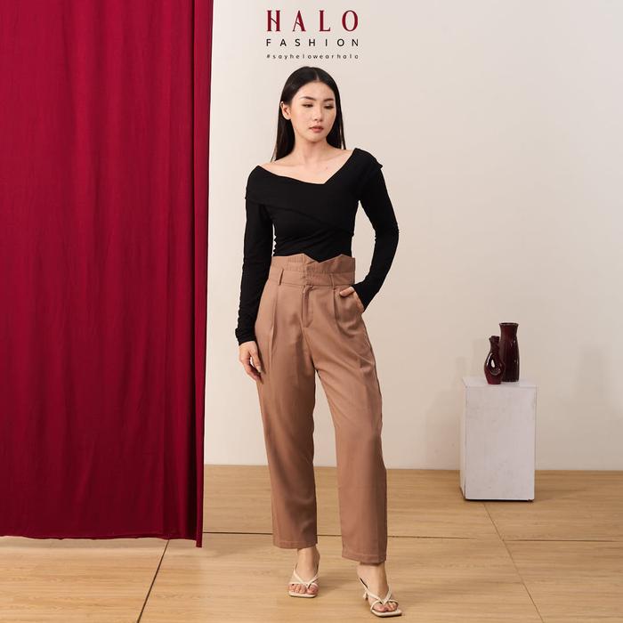 [HALOFASHION] WANDA CELANA HIGHWAIST BASIC PANTS AMERICAN DRILL- BAWAHAN CELANA FORMAL CASUAL WANITA KULOT PANJANG CEWEK - BLACK, S