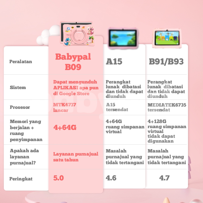 Babypal B09 Android 14 | Baterai 3200mAh | Kontrol Orang Tua IWawa | Kamera Depan Belakang | Hadiah Casing & Tali Leher