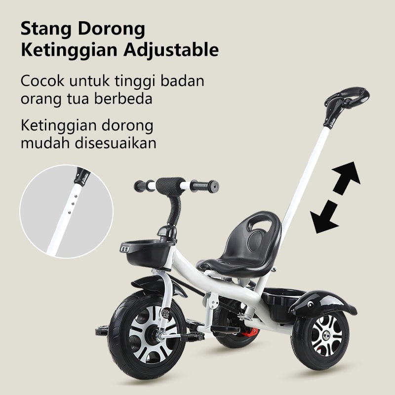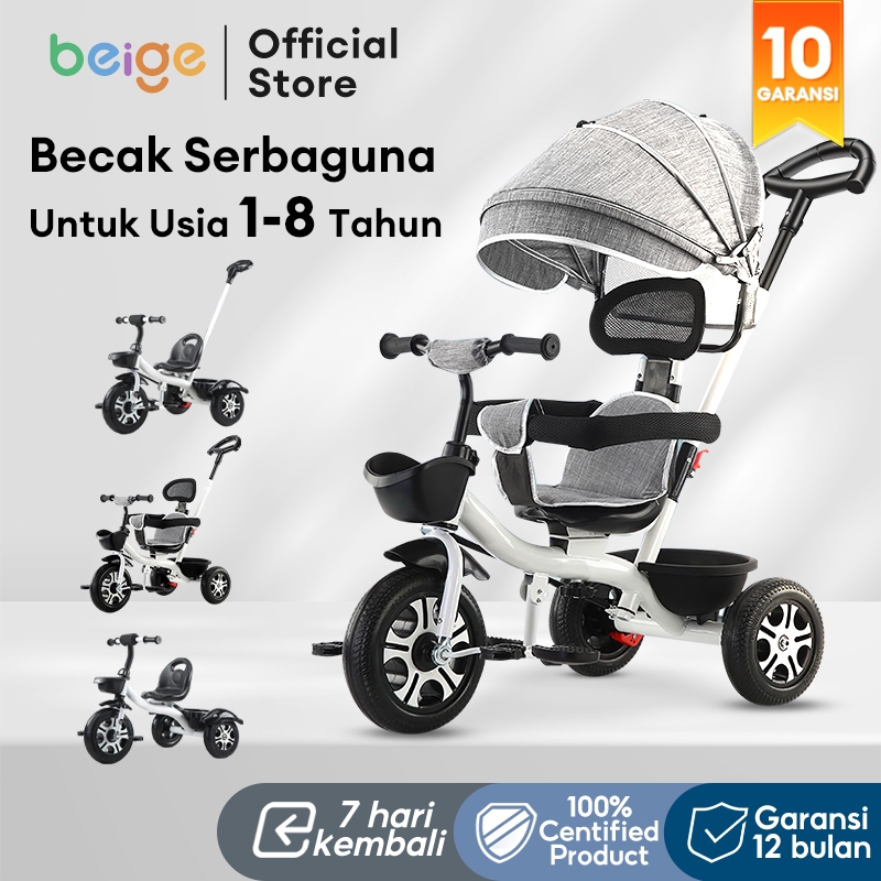 Beige Sepeda Anak 3 Roda 3in1 Multifungsi Keranjang Adjustable Usia 1-8 Tahun Bahan Kuat Anti Slip