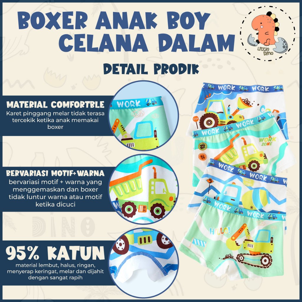 Littledino Boxer Anak Laki Celana Dalam CD Elastis Bayi Underwear Cowok Set 4pcs Katun Murni