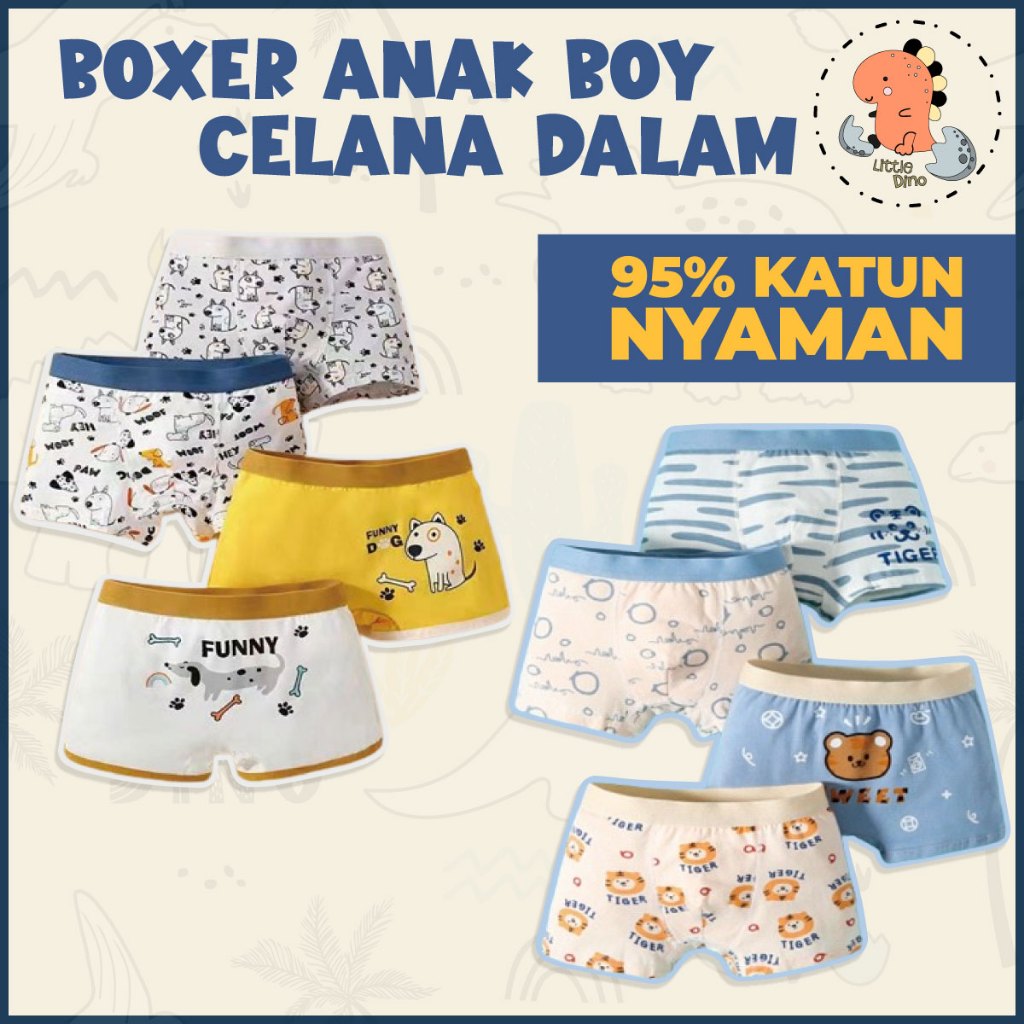 Littledino Boxer Celana Dalam Anak Laki Laki CD Bayi Underwear Cowok Set 4pcs Katun Murni (1-14 Tahun)