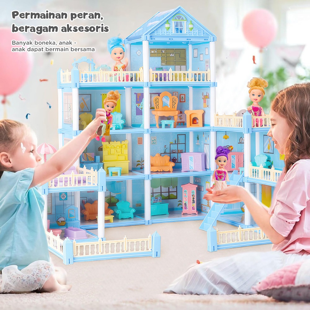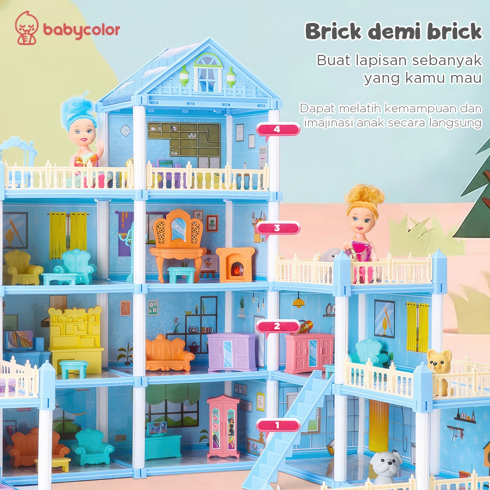 BABYCOLOR DIY Doll House Princess Castle Dream House 15 House Rumah Rumahan Mainan Anak Perempuan