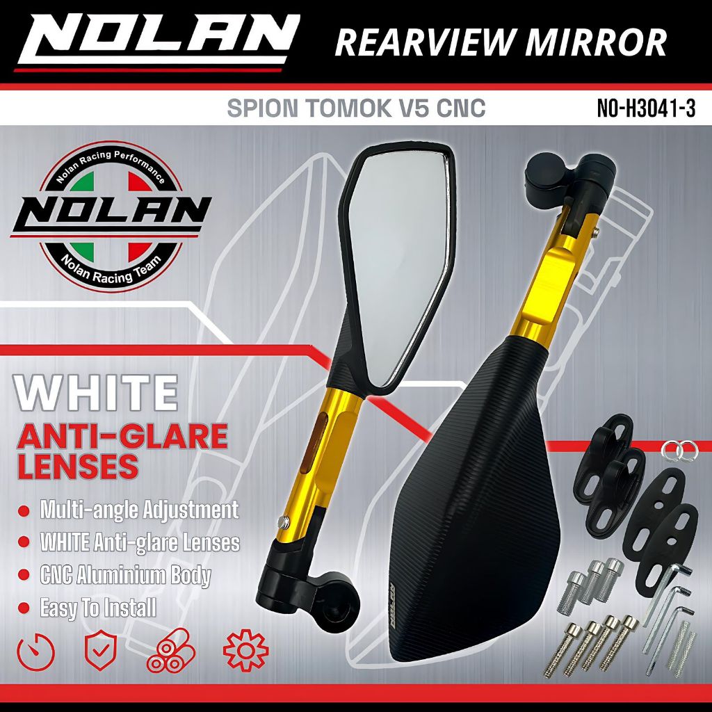 HIGSEA STORE NOLAN Spion V5 H3041-3 Kaca Putih Bahan Full Aluminium Alloy Universal Motor