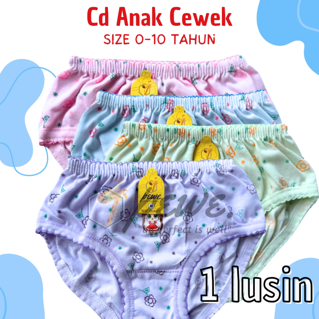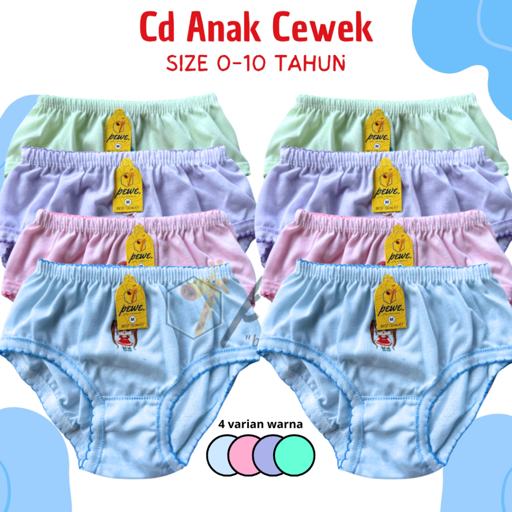1 LUSIN Cd Anak Cewek Bahan Katun Adem Lembut Nyaman / Celana Dalam Anak Perempuan polos Tebal / Sempak Anak Cewek warna