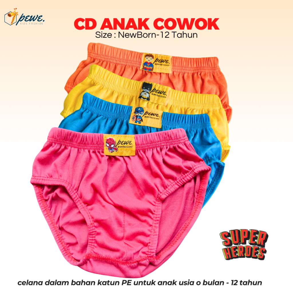 1 Lusin Celana Dalam Anak Laki-Laki Motif Polos Ukuran S - XL Usia 2-10 Tahun | Sempak Anak Cowok