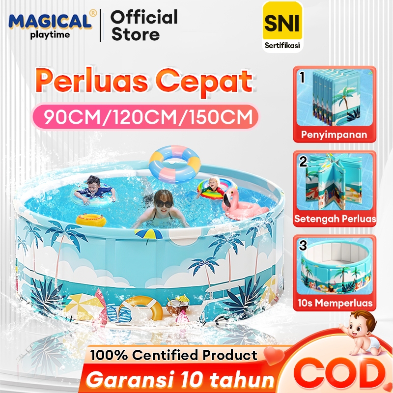 MAGICAL PLAYTIME 【Ready stock】Kolam Renang Anak Jumbo 120/160CM Lipat Kolam Renang Bayi Untuk