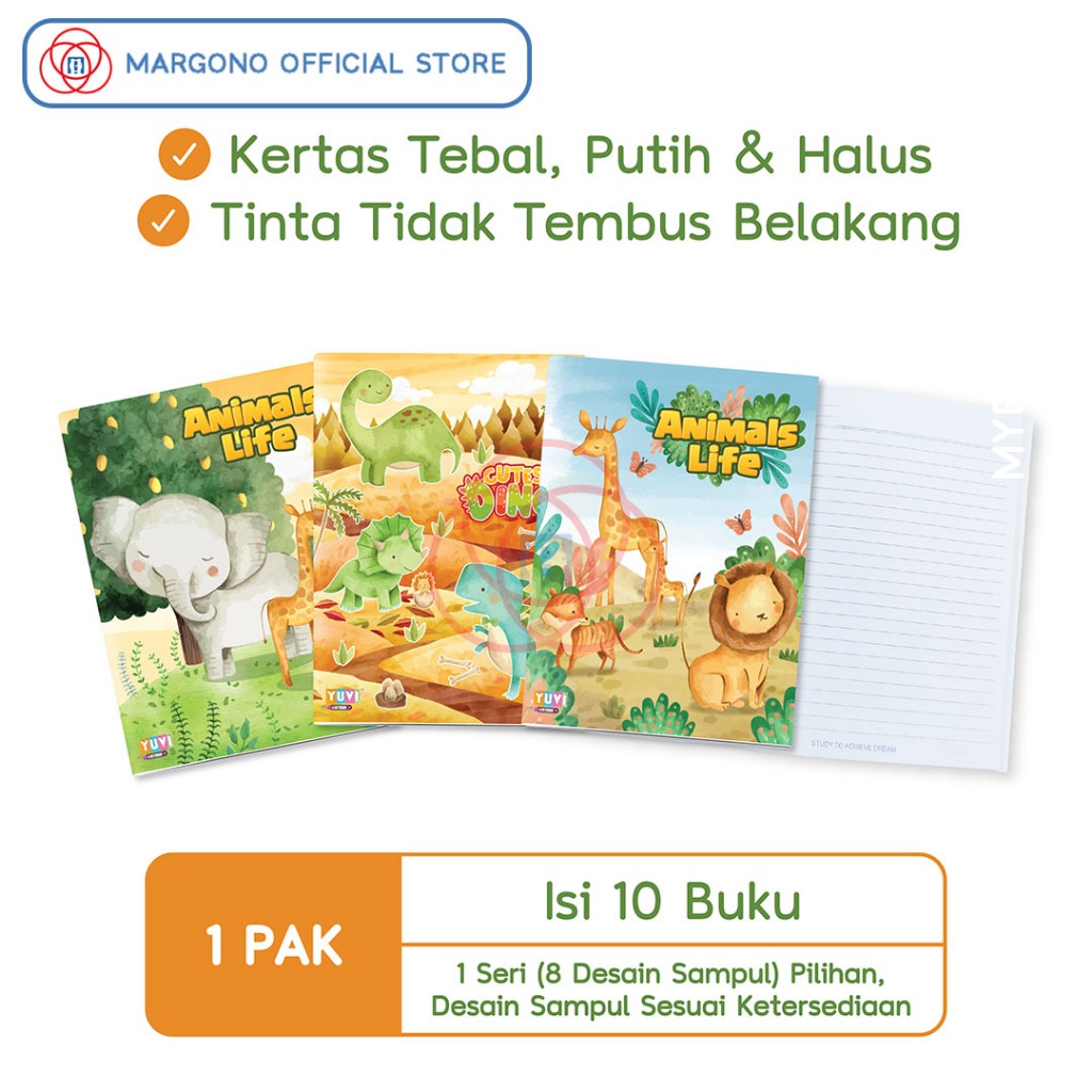 My Book Yuvi Buku Tulis Cute Animals / Dino 38 Lembar - 10 Buku