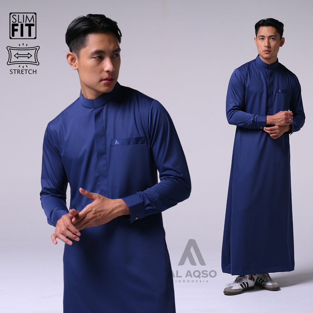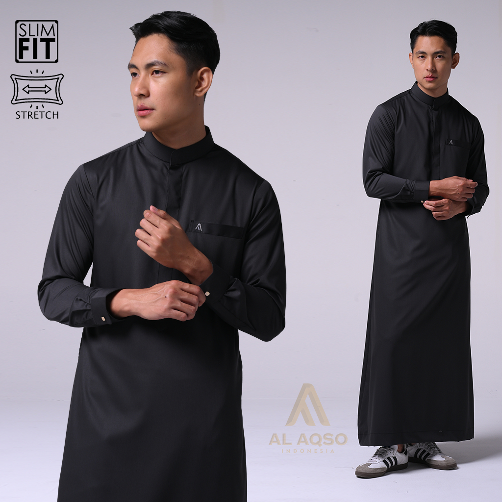 Al Aqso | STRETCH Jubah Gamis Thobe Slimfit Pria Dewasa Premium Lengan Panjang | Jubah Hilal