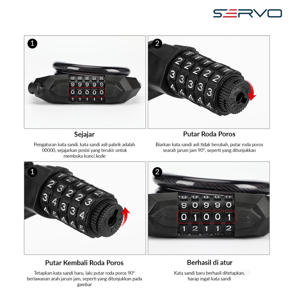 HIGSEA STORE Servo Road - Bike Cable Lock 01 Kunci Gembok Sepeda Motor Helm Helmet Anti Maling Bicycle Lock Chain Anti-Thief Kombinasi 5 Angka