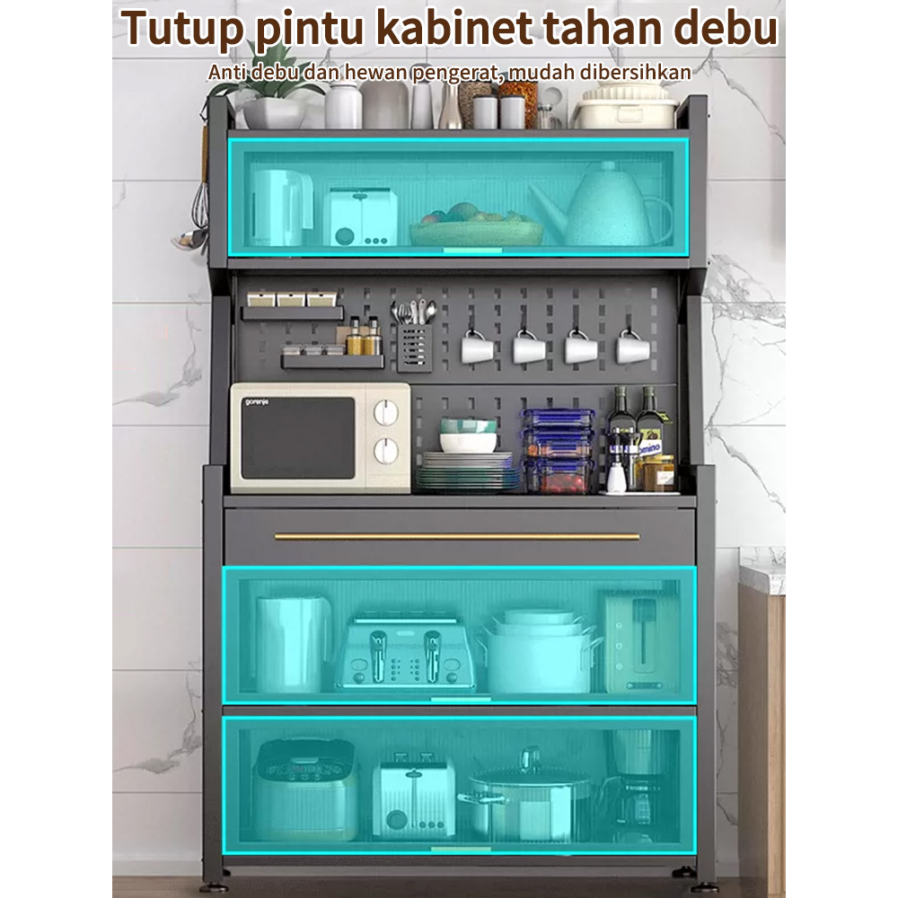 Rak Dapur Lemari Dapur Dengan Pintu Rak Penyimpanan Microwave Oven Rak Multi-Lapisan Lemari Piring Lantai Berdiri Rak