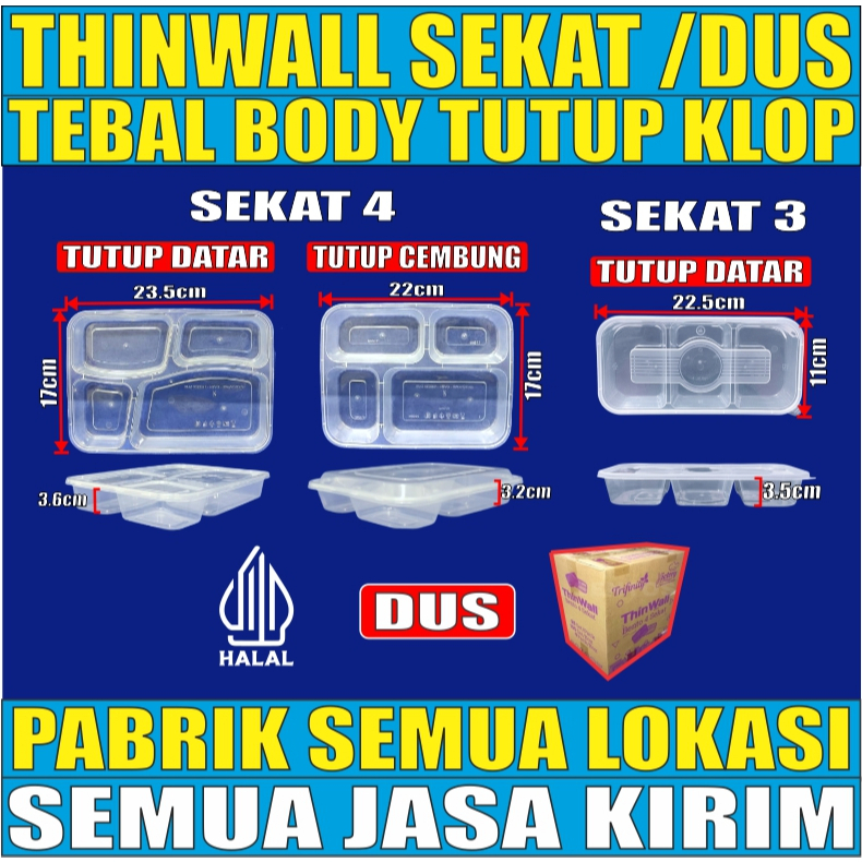 Thinwall 4Sekat Tebal Tutup Datar n 4 Sekat Cembung Victory n 3Sekat RL3 Long Klir Dus JSK