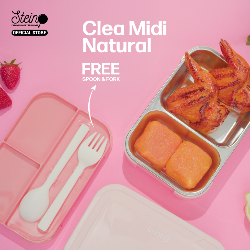 STEIN Lunch Box Stainless 304 Midi Natural - Kotak Makan Stainless 700ml Free Sendok Garpu