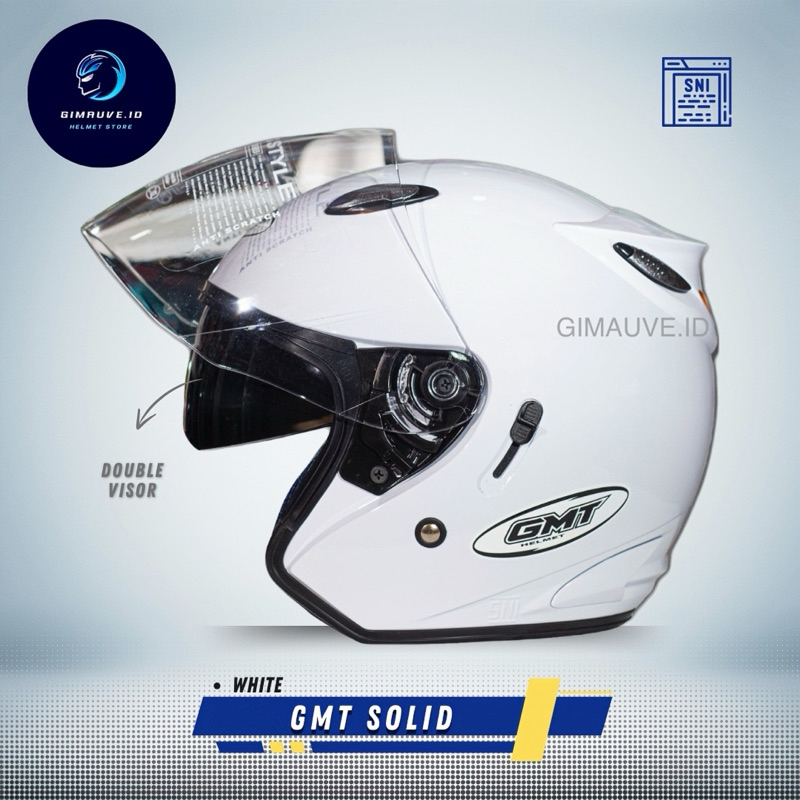 Helm Half Face GMT Original Double Visor Dua Kaca SNI untuk Pria dan Wanita Dewasa